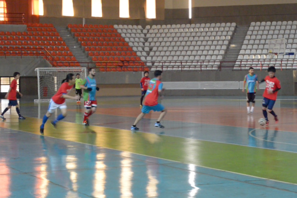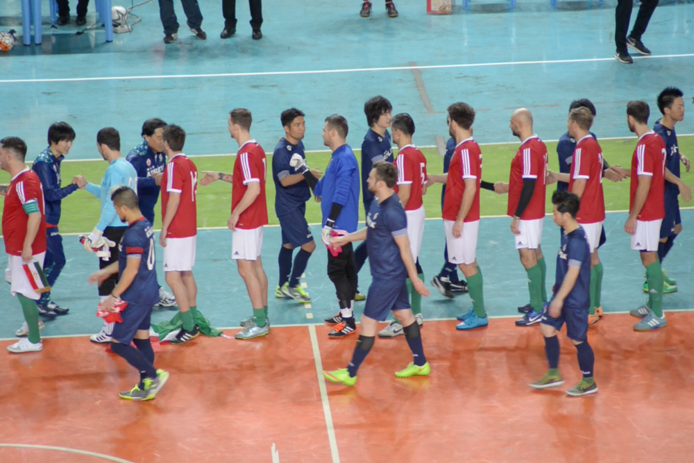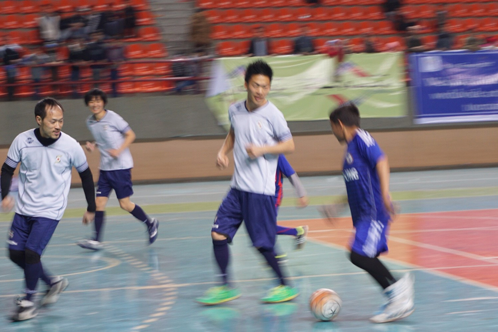 その後、別のフットサルコートに移動し、各国の参加選手と親善フットサル。