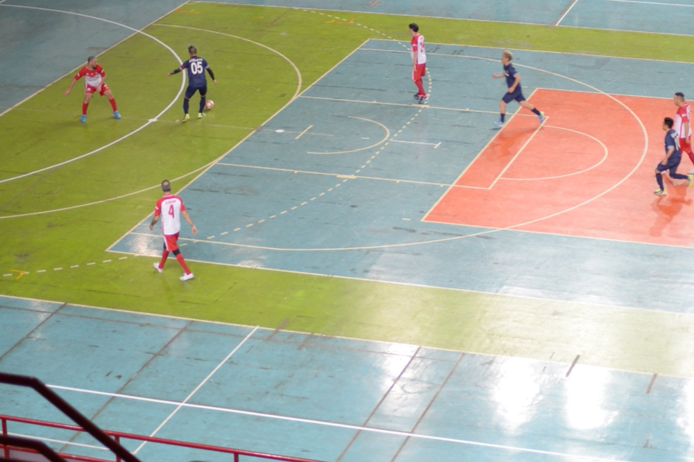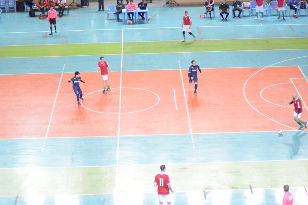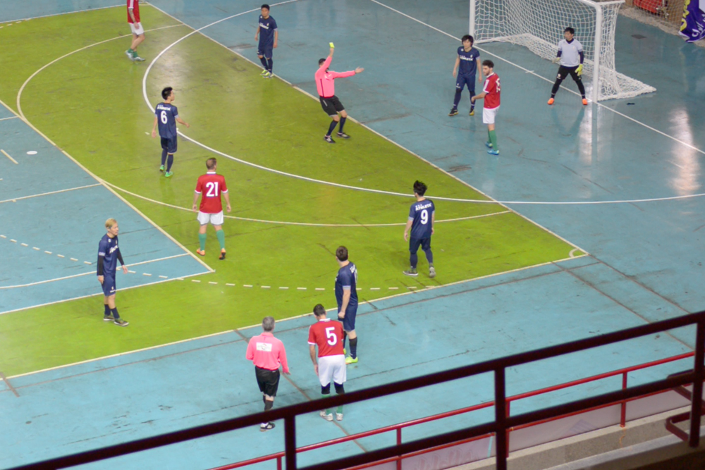 大会側から事前に通知されていた人工芝のグランドでなく、フットサル専用コートでした。