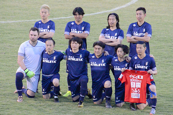 古賀さんのコーナーキックを「なめ(ゴールドジョージ)」がヘディングで合わせ、同点。