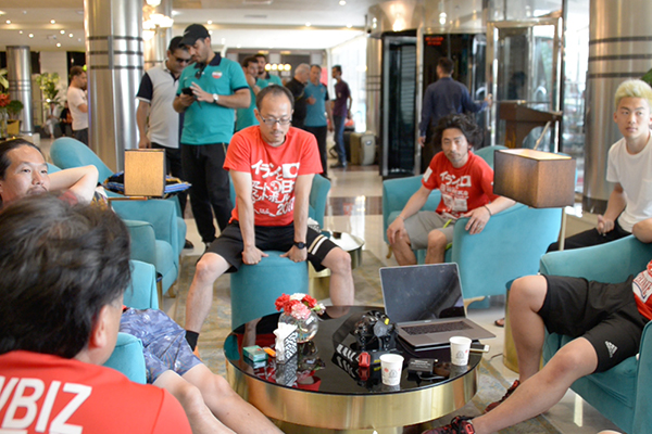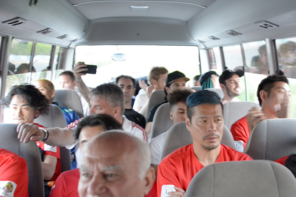 外部のホテルで昼食をとり16時に集合・出発の予定でしたが、大幅に遅れ試合開始は19時から。