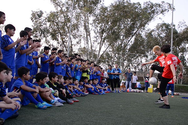 日本チームは18時から地元の子供達のサッカースクールを訪問し、チャリティー活動をさせていただきました。